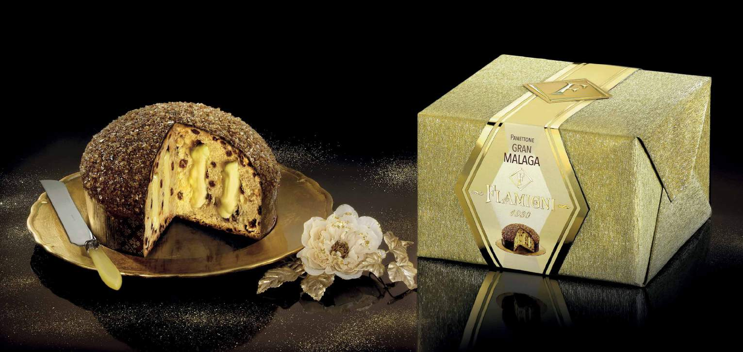 panettone con crema catalana e uvette, ricoperto di cioccolato fondente extra e granella croccante